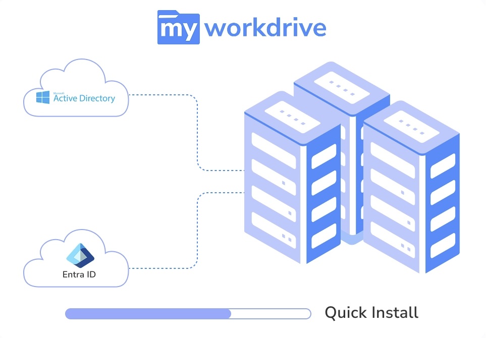 MyWorkDrive is a secure remote file access solution that enables users to access and collaborate on files stored on both on-premises and cloud-based file servers without a VPN, syncing, or migrating data. It runs on your existing Windows infrastructure and integrates with Active Directory or Entra ID, providing secure access via web browser, mapped drive, or mobile apps. MyWorkDrive is not a hosted storage provider.