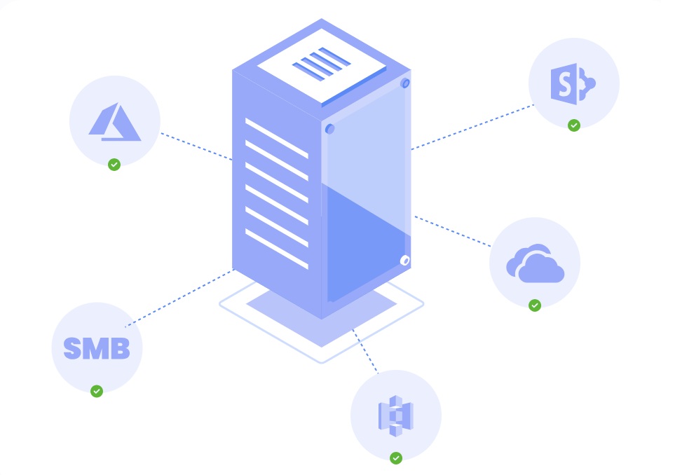 Easily connect to existing file shares or cloud storage. Your existing NTFS or cloud permissions are automatically enforced.
